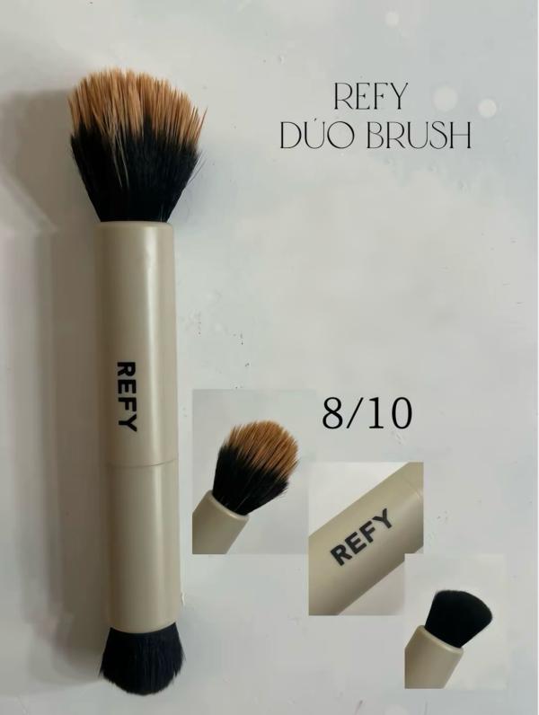 The Refy Duo Brush stands out for its thoughtful design and high-end feel. With two functional ends, this brush allows for precision and flexibility without cluttering your makeup bag. One side is perfect for controlled placement, while the other helps smooth and blend product seamlessly.
