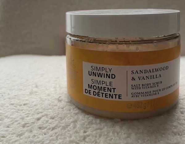 1. Sandalwood & Vanilla Salt Body Scrub with Vitamin E