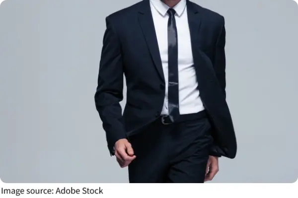 • Tie length: The tip of your tie should ideally hit the middle of your belt buckle. Anything longer or shorter can throw off your look.