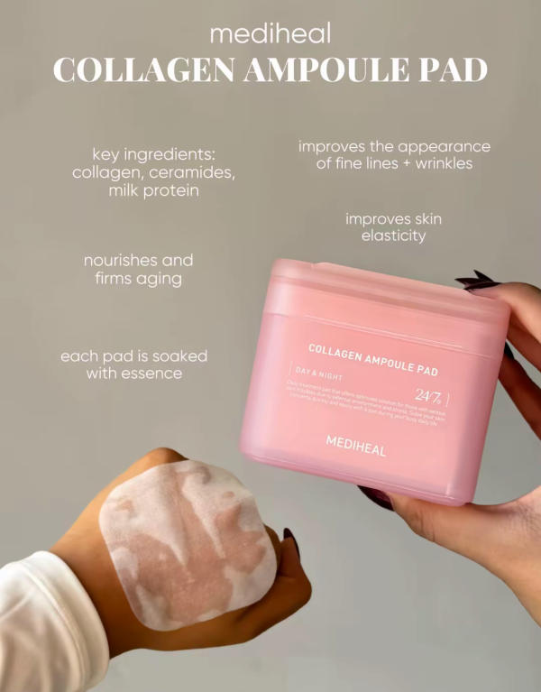These essence-soaked pads glide across the face, instantly boosting hydration and leaving a soft, dewy finish. Infused with collagen, they help improve skin elasticity and reduce the appearance of fine lines for a more youthful look.