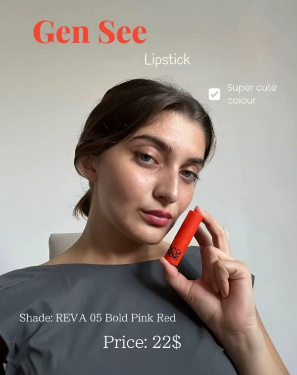 2. Gen See Pick Me Up Lipstick – REVA 05 Bold Pink Red ($22)