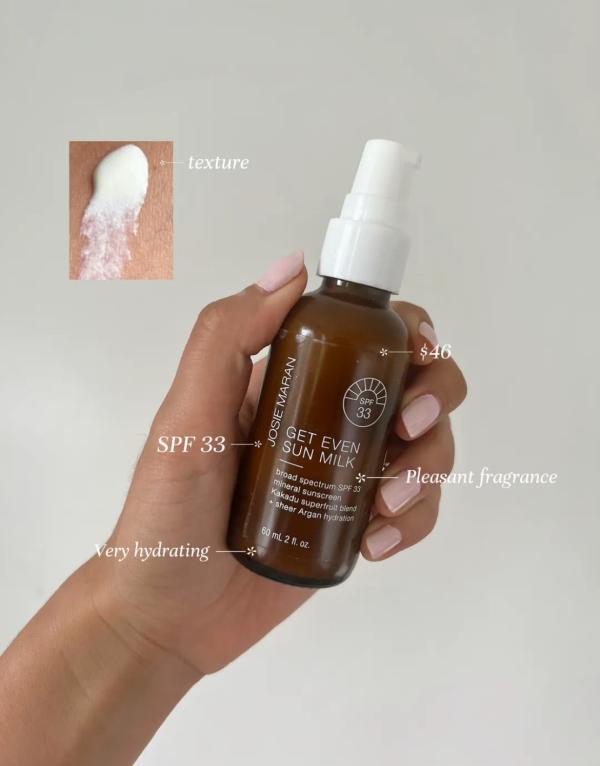 3. Josie Maran Get Even Sun Milk – SPF 33