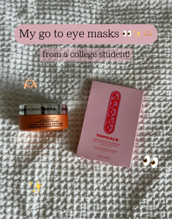 Both of these eye masks are essentials for anyone struggling with tired eyes or dark circles. Peter Thomas Roth offers long-lasting, intensive brightening, while Topicals provides an affordable and effective daily refresh. Together, they make under-eye care easy, effective, and enjoyable—even during the busiest college days!