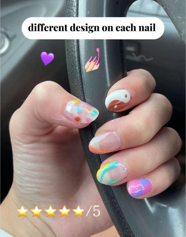 For this set, I gave each nail a unique design. There are endless possibilities for mixing patterns, colors, and textures, and it really makes your nails stand out. I loved this set because it was bold, fun, and completely one-of-a-kind. It was one of my top favorite nail sets from last summer and is perfect for anyone who loves creative and playful designs.
