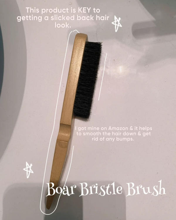 A boar bristle brush is essential for smoothing out bumps and flyaways. I use it after brushing my hair to shape it perfectly before adding styling products, creating a polished base for any slicked-back look.