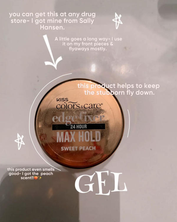 I apply gel to the front sections of my hair, where baby hairs are most noticeable. This product keeps them smooth and slicked back all day. Bonus: it has a subtle peach scent that makes styling even more enjoyable.