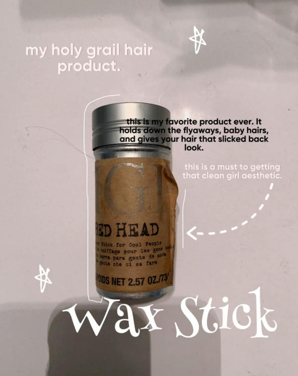 After securing my hair with a tie, I use a wax stick to tame any remaining flyaways and baby hairs. It’s simple to use, long-lasting, and perfect for achieving a sleek, polished hairstyle.