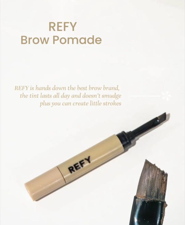 REFY delivers one of the best pomades I've used. The dual-ended design includes a small jar of creamy pomade and a brush, making it easy to create either thin, natural lines or bold, defined brows. The formula is smooth, buildable, and stays put until removed, without smudging or clumping.