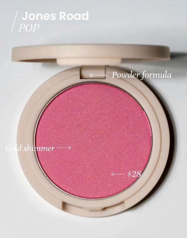 This powder blush comes in a lively pink shade laced with gold shimmer. The vibrant color payoff makes it a fun choice for days when you want a cheerful, radiant finish. As a fan of Bobbi Brown, I’m loving her new line Jones Road Beauty—it’s well worth checking out.