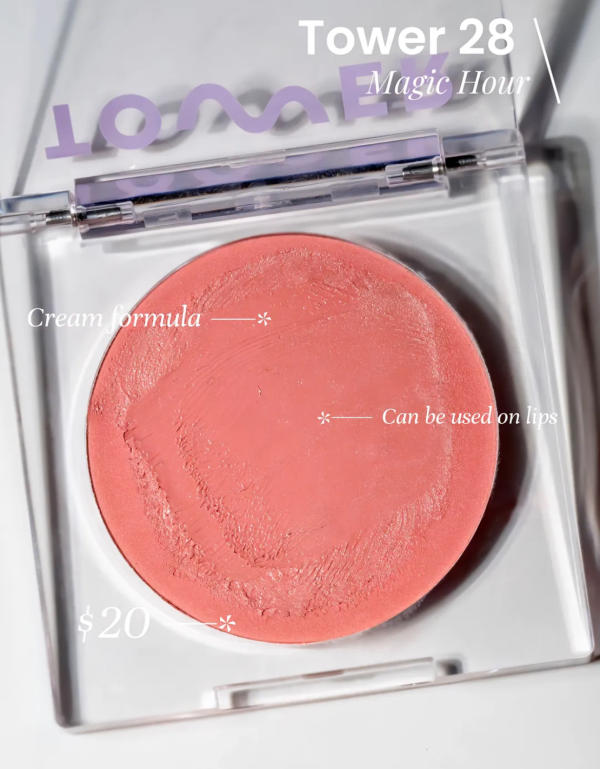A cream blush with a rosy-nude hue, this one stands out for its rich pigmentation and smooth texture. Unlike many cream formulas, it doesn’t feel greasy or sticky on the skin. Tower 28 also recently released a bright hot pink shade, which is definitely next on my list to try.