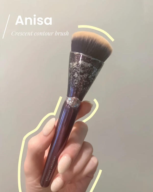 The unique crescent shape of this brush makes contouring simple and precise. Its soft yet dense bristles glide over the skin, making it easy to sculpt and blend for a natural-looking definition. The design is functional and stylish, adding a professional touch to any makeup routine.
