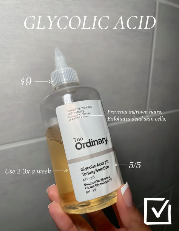 Next, elevate your exfoliation routine with Glycolic Acid from The Ordinary. This gentle chemical exfoliant helps remove dead skin cells and prevent ingrown hairs. Apply a few drops to the waxed area 2–3 times a week, preferably at night. It promotes cell turnover, keeping your skin soft, even, and radiant.