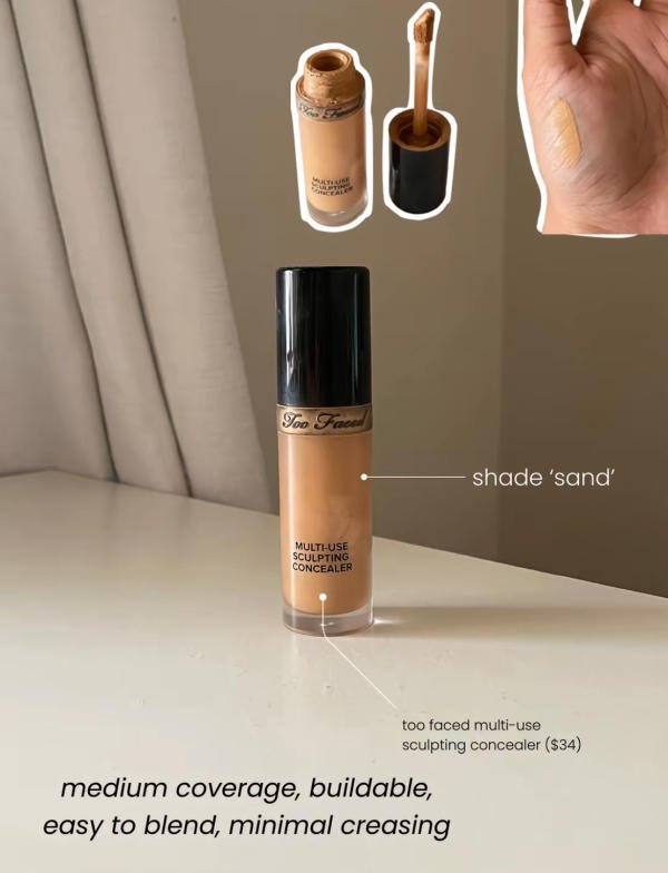 3. Too Faced Multi-Use Sculpting Concealer – $34 (Shade: Sand)