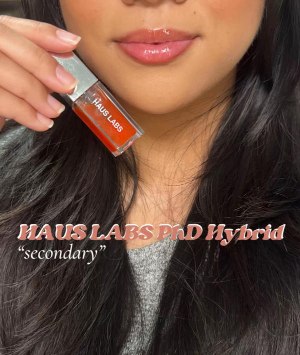 The Haus Labs phD Lip Oil is innovative, reacting to your pH to create a shade uniquely suited to your lips. The Secondary shade gives a subtle peachy tone while functioning like a nourishing balm. Moisturizing and comfortable, it's one of my favorites for a natural, everyday look.