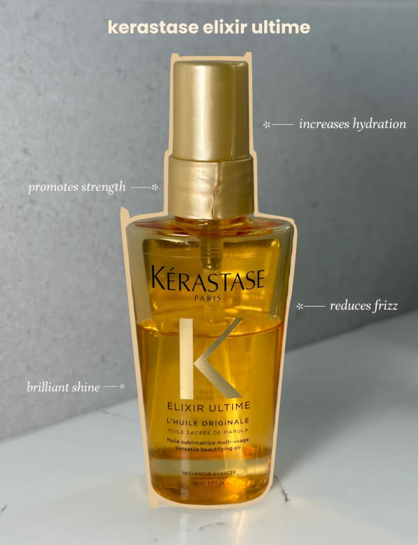This oil is small but mighty. Ultra-lightweight and reparative, it delivers instant shine while softening the hair without weighing it down. One of its standout benefits is how it enhances color vibrancy, keeping dyed hair looking fresh and glossy. It also helps tame flyaways, leaving the finish sleek and polished. On top of that, it provides heat protection, making it an essential step before using hot tools.