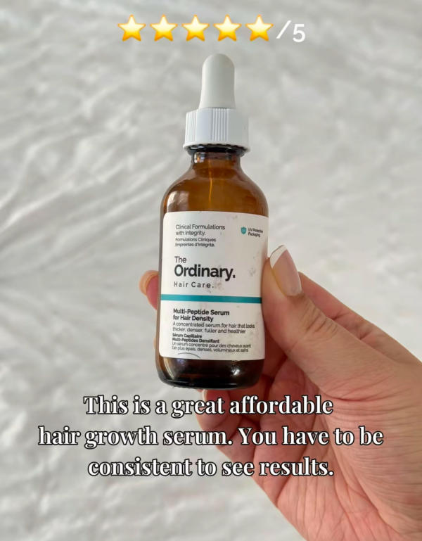 The Ordinary serum is a powerhouse for hair growth. It's lightweight, easy to apply, and has made a noticeable difference in hair density and scalp health. This one earns a full 5 for effectiveness and simplicity.