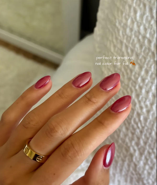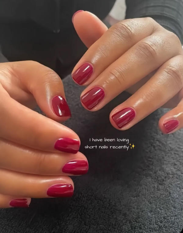 Short nails are incredibly stylish and easy to maintain. This deep raspberry red is bold yet sophisticated, making it a great choice for those who love a pop of color without going overboard. It's perfect for adding a chic touch to your autumn look.