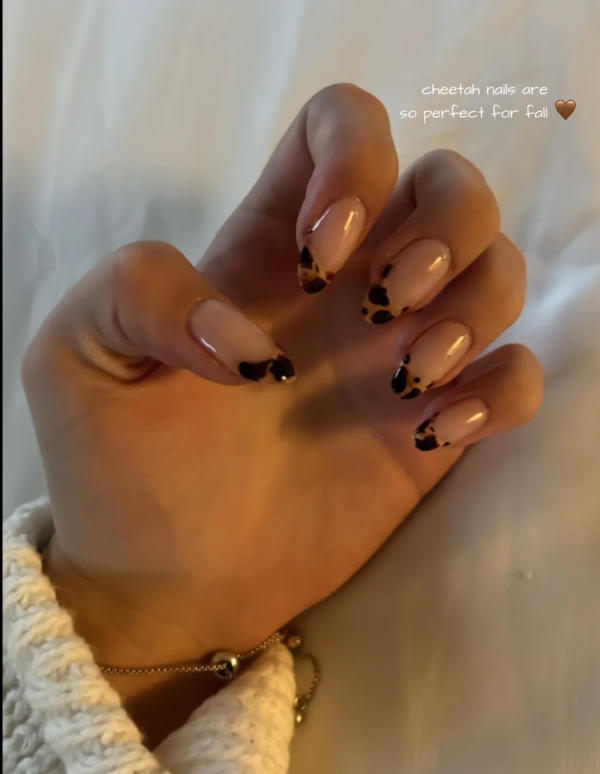 For a fun yet subtle statement, cheetah print French tips are a must-try this fall. The neutral base keeps it wearable, while the trendy cheetah design adds personality. It's a playful option that's both modern and elegant.