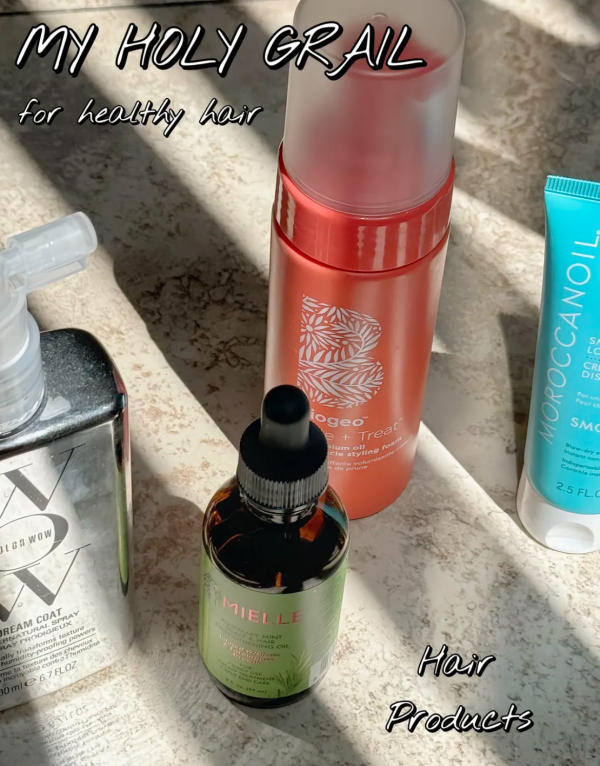 Over time, I’ve discovered a few must-have products that I consistently rely on for styling, smoothing, and strengthening. These favorites help tame frizz, add shine, and support healthy hair growth!
