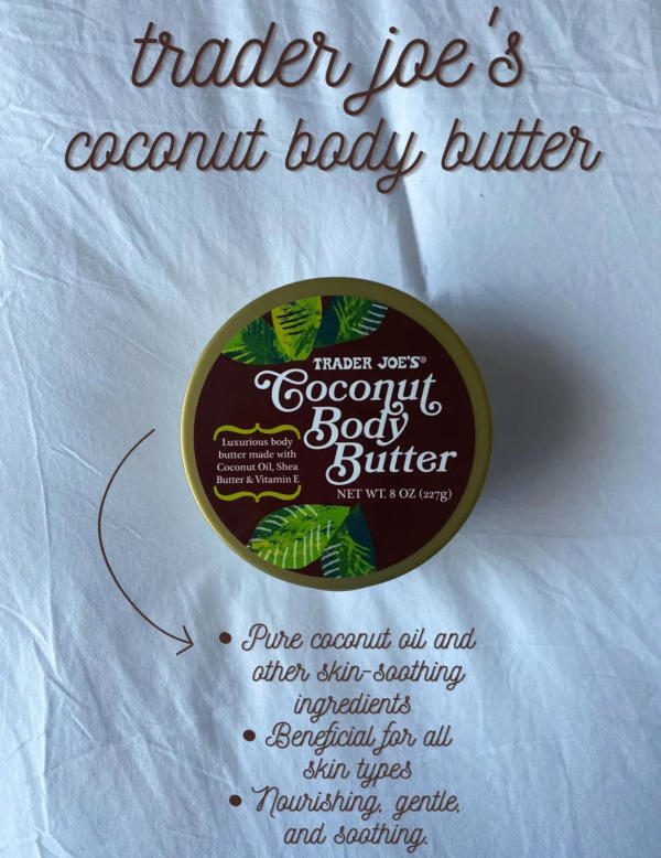 Affordable and effective, this body butter is gentle enough for all skin types. It provides long-lasting moisture and leaves skin feeling smooth and nourished. As a favorite among college students and budget-conscious shoppers, it’s a reliable option for everyday use. Its coconut scent is light and pleasant, making it a versatile addition to any skincare routine.