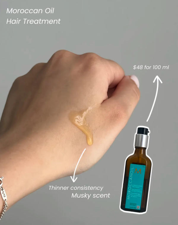 This serum has a lighter, thinner texture that glides smoothly through thick hair. It offers a rich, musky scent that is pleasant but fades quickly. Perfect for those looking for a silky finish without heaviness.