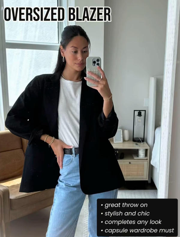 An oversized blazer is a must-have for adding structure and style. It’s perfect for dressing up casual outfits or adding sophistication to a more formal look. The relaxed yet polished silhouette gives an effortlessly fashionable vibe and instantly makes any outfit look put-together. I find myself reaching for mine repeatedly during the fall months.