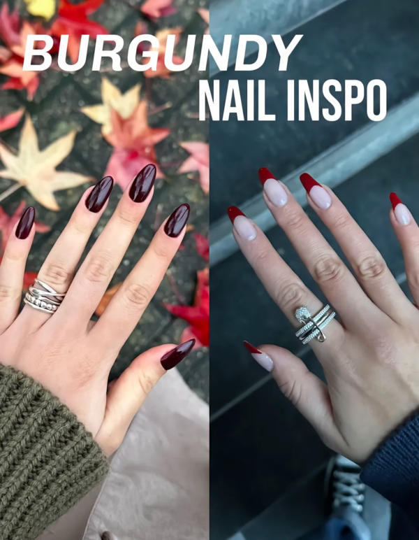 Burgundy nails are timeless, chic, and versatile, making them a fall favorite. Here are a few ways to style this moody hue!