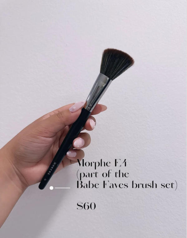 Although this brush might be discontinued, it’s still worth picking up if you can find it. I use it for powder bronzers when I want a bit more coverage than the Morphe E4. It’s fluffy yet slightly denser, making bronzing faster while still delivering a smooth finish.