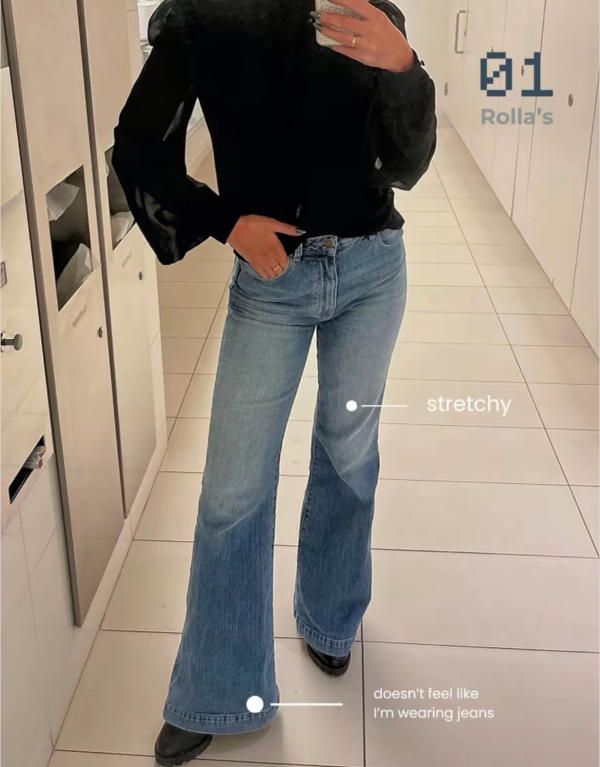 Rolla's jeans are on the pricier side, but they are worth every penny. They're incredibly comfortable, durable, and maintain their shape even after multiple washes and trips through the dryer. I love the bootcut style, which runs slightly long—perfect for customizing the length. These jeans fit perfectly whether I'm feeling bloated or slim, and they feel so lightweight that I hardly notice I'm wearing them.