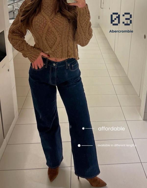 Abercrombie offers stylish denim at a more affordable price. The brand has a wide selection of cuts, lengths, and styles, making it easy to find something perfect. A huge perk is that you can specify your height when ordering, so hemming is often unnecessary. Once you find a style that fits, you can easily reorder in different washes. I'm a big fan of dark wash denim, which feels classy and trendy this fall.