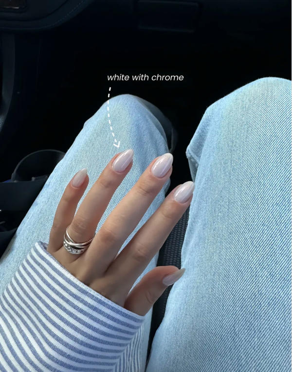 1. White Nails with Chrome Finish