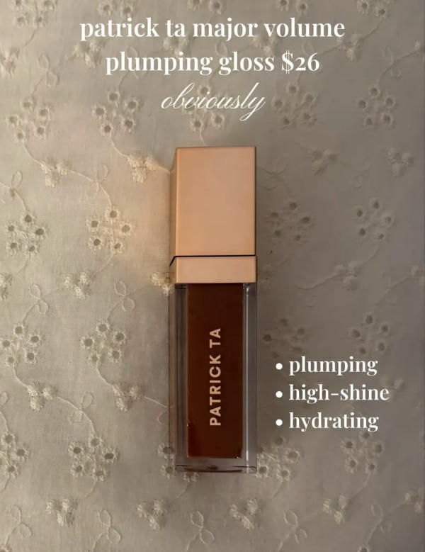 This mini plumping gloss provides hydration and a slight boost to lip volume. Its brownish-red undertone gives the lips a rich, cocoa-inspired color while keeping them soft and comfortable in colder weather.