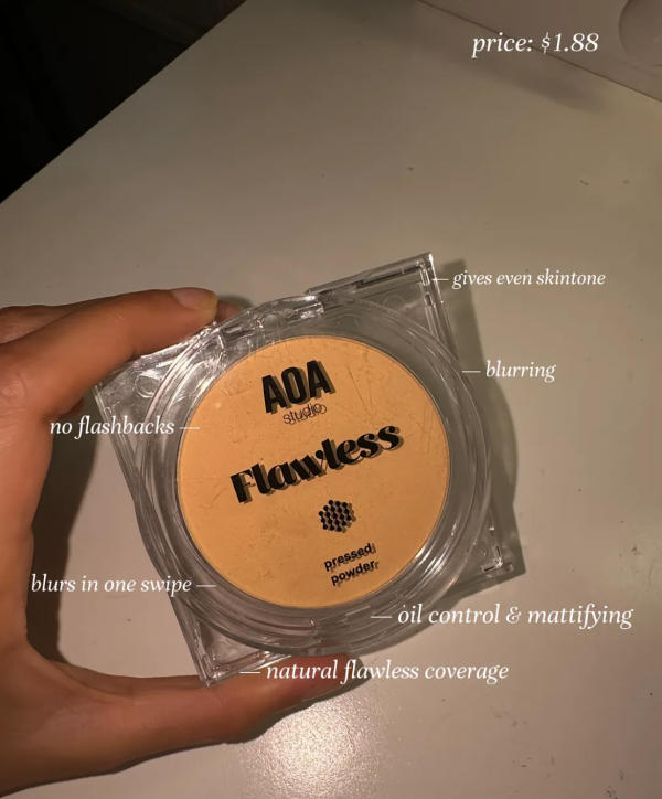 If you're looking for an affordable powder that performs like a high-end one, this is it! The AOA Studio Flawless Pressed Powder gives amazing coverage without feeling heavy or cakey. It sets makeup beautifully and keeps shine under control all day. What's even better? It blends seamlessly, leaving your skin looking naturally smooth. A total win for budget-friendly beauty lovers!