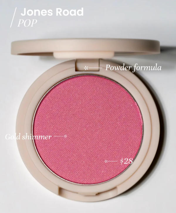 If you want a true bright pink that wakes up the complexion instantly, this one delivers. It’s a powder formula with a touch of gold sheen, and it gives that cheerful flush that Bobbi Brown products are known for. Jones Road Beauty keeps impressing me more and more.