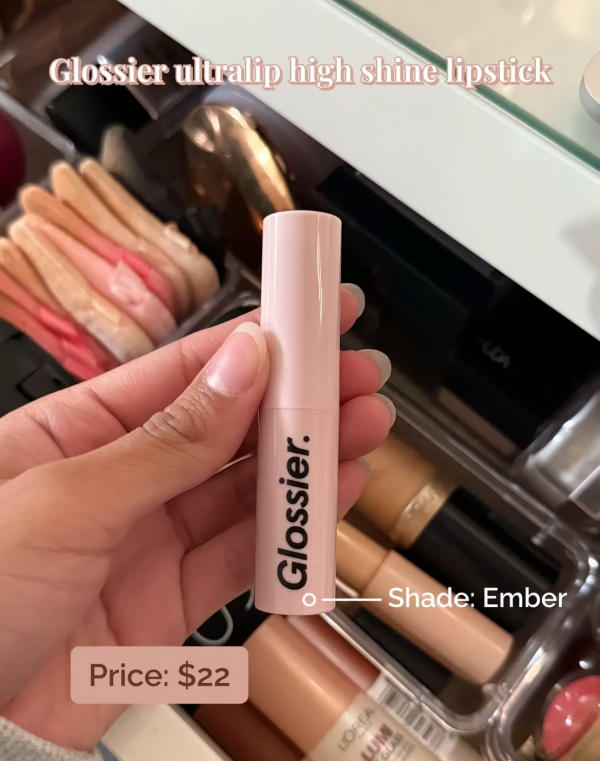 Next, layer on the Glossier Ultralip for that smooth, moisturizing pop of shine. It glides on effortlessly, melting into the lip stain to create a fuller, more dimensional look. The formula feels like a lip balm but delivers the pigment of a lipstick — your lips will look plump, glossy, and perfectly tinted for winter vibes.