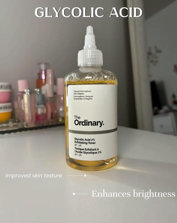 Glycolic acid is an alpha hydroxy acid (AHA) that works on the skin's surface to promote cell turnover. By removing dead skin cells, it improves texture, evens out skin tone, and enhances radiance. Over time, it can also reduce the appearance of fine lines and dullness, giving the skin a natural glow. Always pair glycolic acid with sunscreen during the day, as it can make the skin more sensitive to sunlight.
