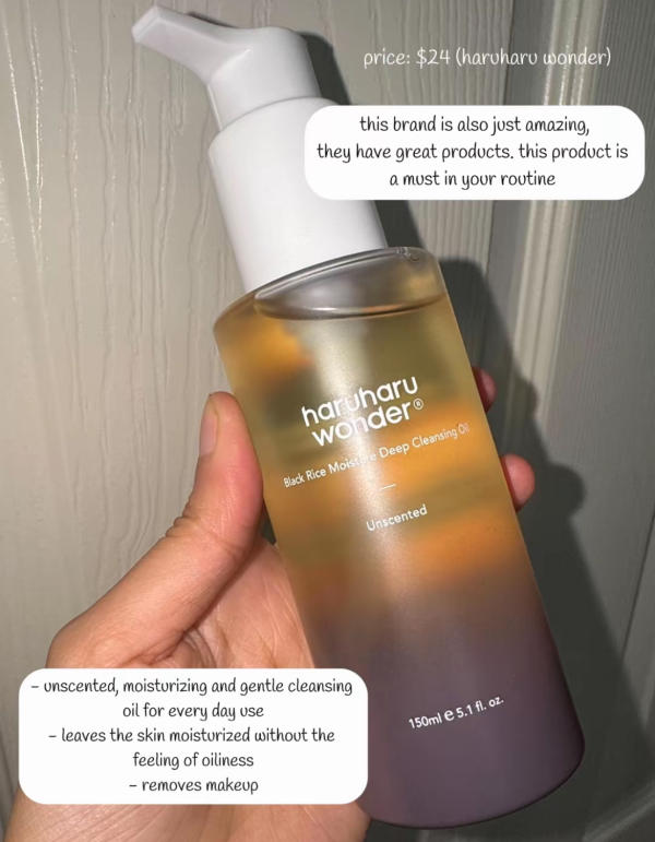 This cleansing oil from Haruharu Wonder uses fermented ingredients to deeply cleanse while nourishing the skin. It removes impurities effortlessly and leaves your face feeling smooth and refreshed. The lightweight texture makes it ideal for daily use.