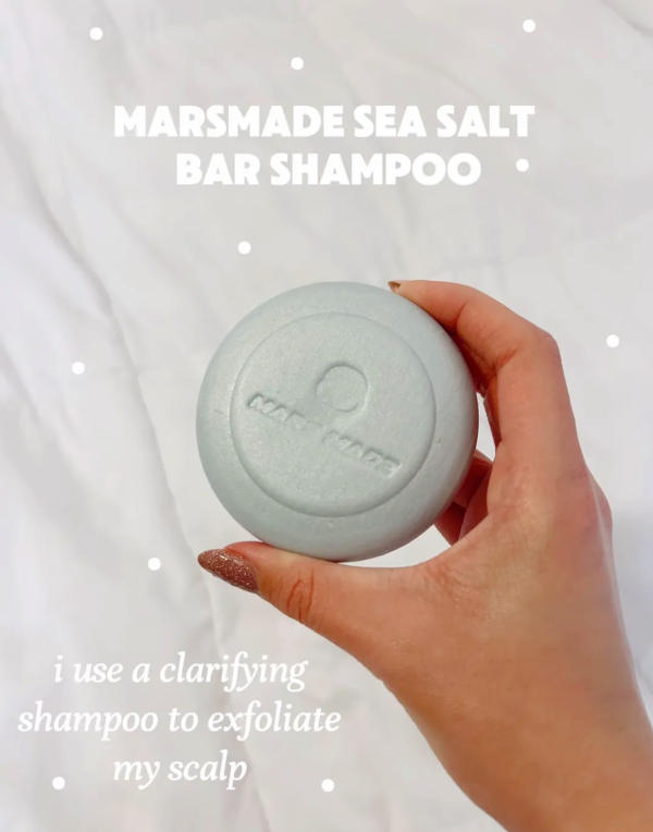 I start with a clarifying shampoo, like a sea salt shampoo bar. It gently exfoliates the scalp, removes product buildup, and gets rid of dry, flaky patches, leaving my hair feeling clean and refreshed.