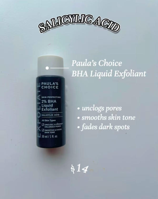 If you're dealing with clogged pores and uneven texture, this ingredient is your go-to. Salicylic acid exfoliates the skin, smooths rough areas, and helps fade dark spots by removing dead cells that make discoloration more noticeable.