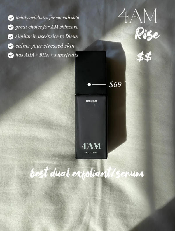 A newer addition to my collection, 4AM Rise is excellent for morning routines. It's designed to protect the skin barrier, which is perfect for sunny days when SPF is essential. I've only used it a few times so far, but it feels refreshing and supportive for healthy, resilient skin.