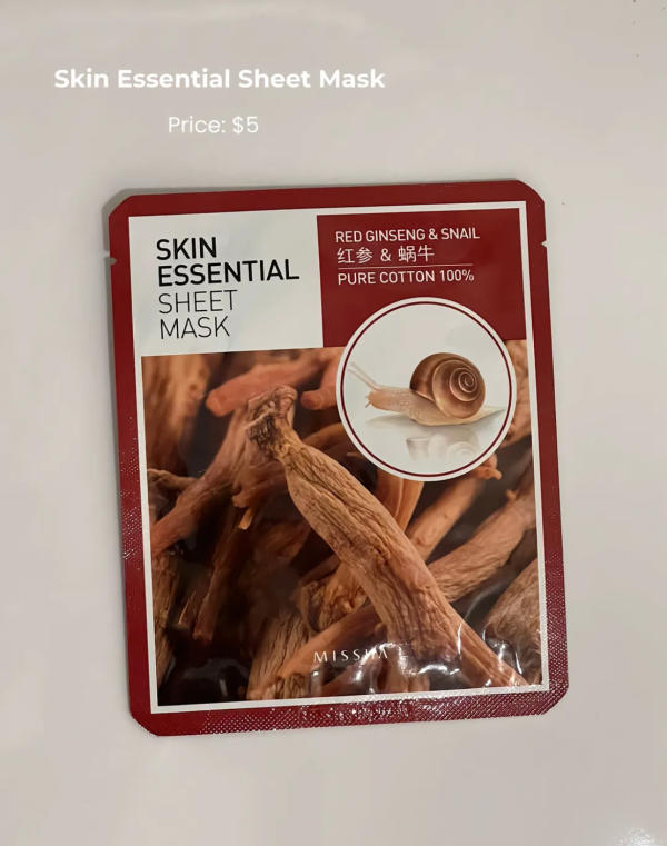 2. Skin Essential Sheet Mask (Snail Mucin Formula)