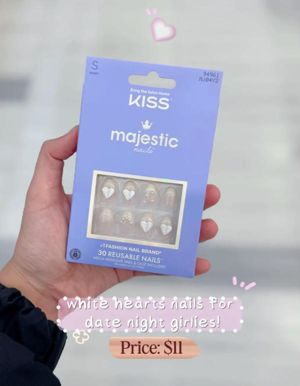 Romantic and effortlessly elegant, these nails are made for moments when you want to feel sweet yet sophisticated. The white heart design is perfect for date nights, Valentine's Day, or whenever you're channeling your soft, glam side. Plus, they're sturdy enough to stay on through anything.