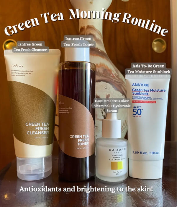 Here's a complete morning routine packed with green tea goodness to keep your complexion calm, clear, and glowing!