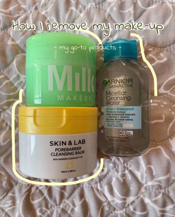 My makeup-removal routine relies on three essentials: a cleansing balm to melt makeup, micellar water to clear away leftover residue, and a gentle cleanser to finish the job. This combination keeps my skin clean, healthy, and breakout-free!