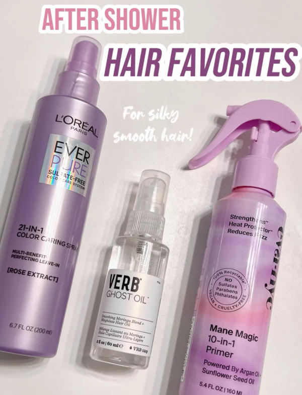 These three products consistently keep my highlighted hair healthy, smooth, and manageable after every shower. VERB Ghost Oil hydrates the ends, L'Oréal's 21-in-1 spray protects and detangles, and EVA NYC Mane Magic provides extra slip and shine. When layered thoughtfully, they create the perfect routine for keeping hair soft, protected, and ready for styling!