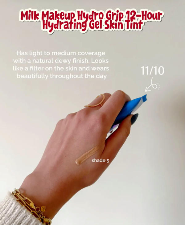 Now this one impressed me right away. True to Milk's signature Hydro Grip line, this skin tint delivers a gorgeous dewy, hydrated finish that looks like a natural filter on your skin. It provides light to medium coverage, evening out your complexion while still letting your skin shine through.