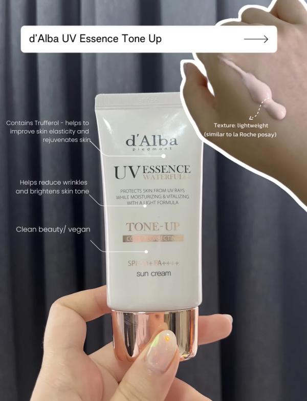 2. d'Alba UV Essence Waterfull+ Tone-Up Color Correcting (50ml – $24.25)
