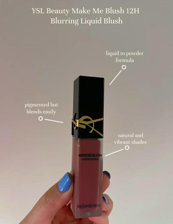 YSL's new liquid blushes are a dream come true for glow lovers! They start as a light, blendable liquid and then dry down to a soft, long-lasting finish that truly stays put all day. Available in six gorgeous shades, these blushes deliver buildable pigment that's easy to control — whether you want a sheer wash of color or a bold pop on the cheeks. They feel luxe, effortless, and oh-so-flattering.