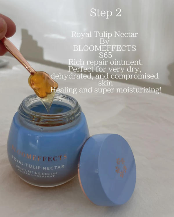 After the collagen mask comes off, the skin is ready to drink in moisture. When I only wear the mask for an hour, I skip washing and go straight in with this nectar. I warm a small amount between my hands and press it into the skin like a repairing cocoon. But if I keep the mask on overnight, I rinse first, then apply. Either way, the nectar brings back softness, reduces tightness, and deeply rehydrates the sunburned areas.